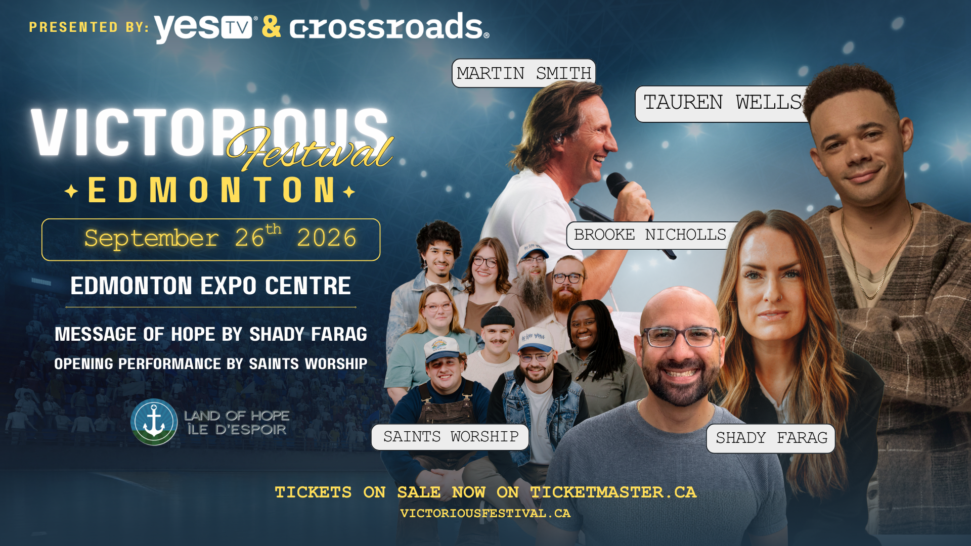 Land of Hope is excited to announce that the Victorious Festival 2026 is heading to Edmonton, Alberta! Following the powerful impact of previous festivals across the globe, this year’s event is set to be one of our most meaningful gatherings yet.Victorious Festival is a celebration of Christian faith that brings people together through dynamic worship, inspiring messages, and powerful community outreach. In 2026, we’re expecting believers from across Canada and beyond to gather in Edmonton to worship, grow, and serve together.